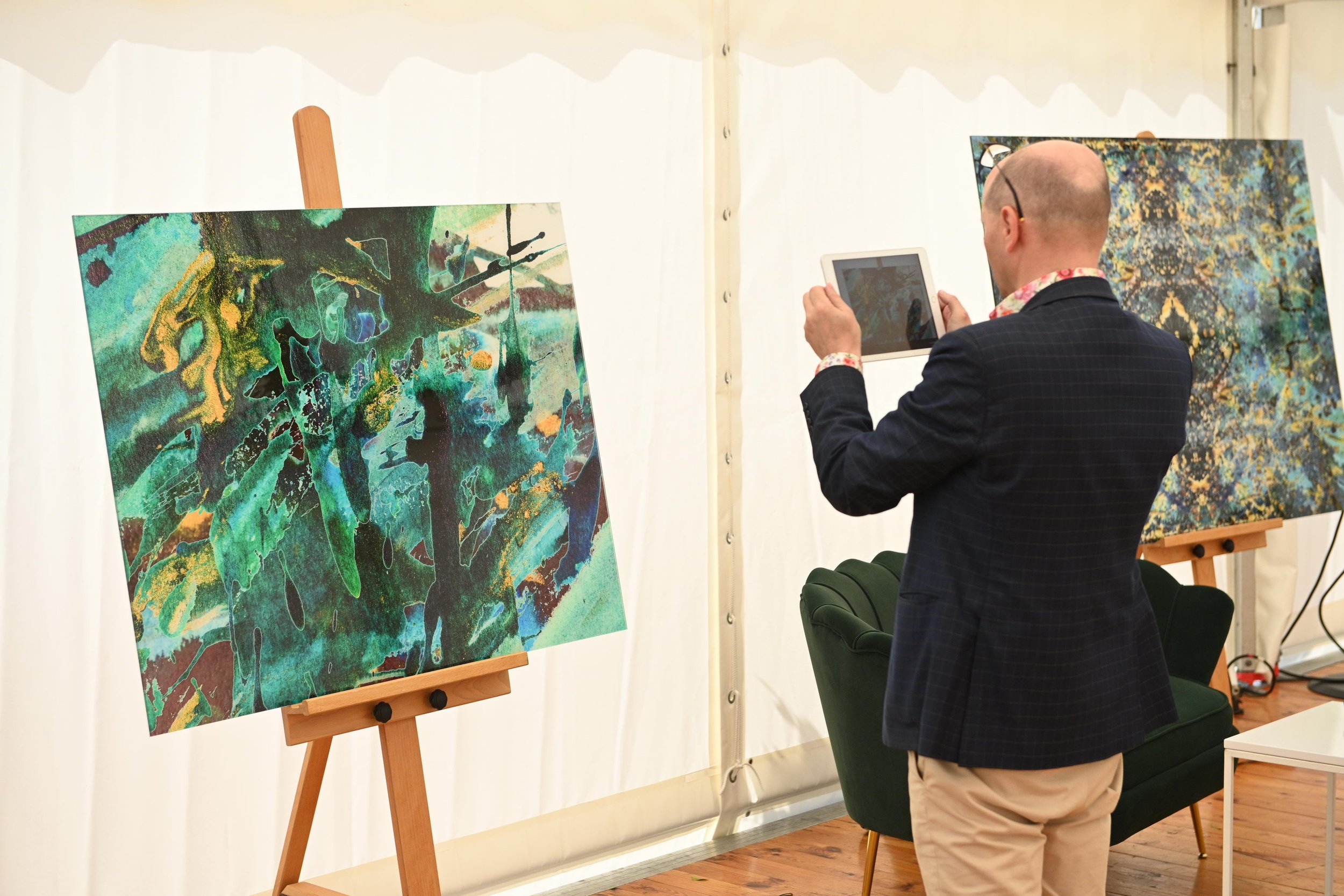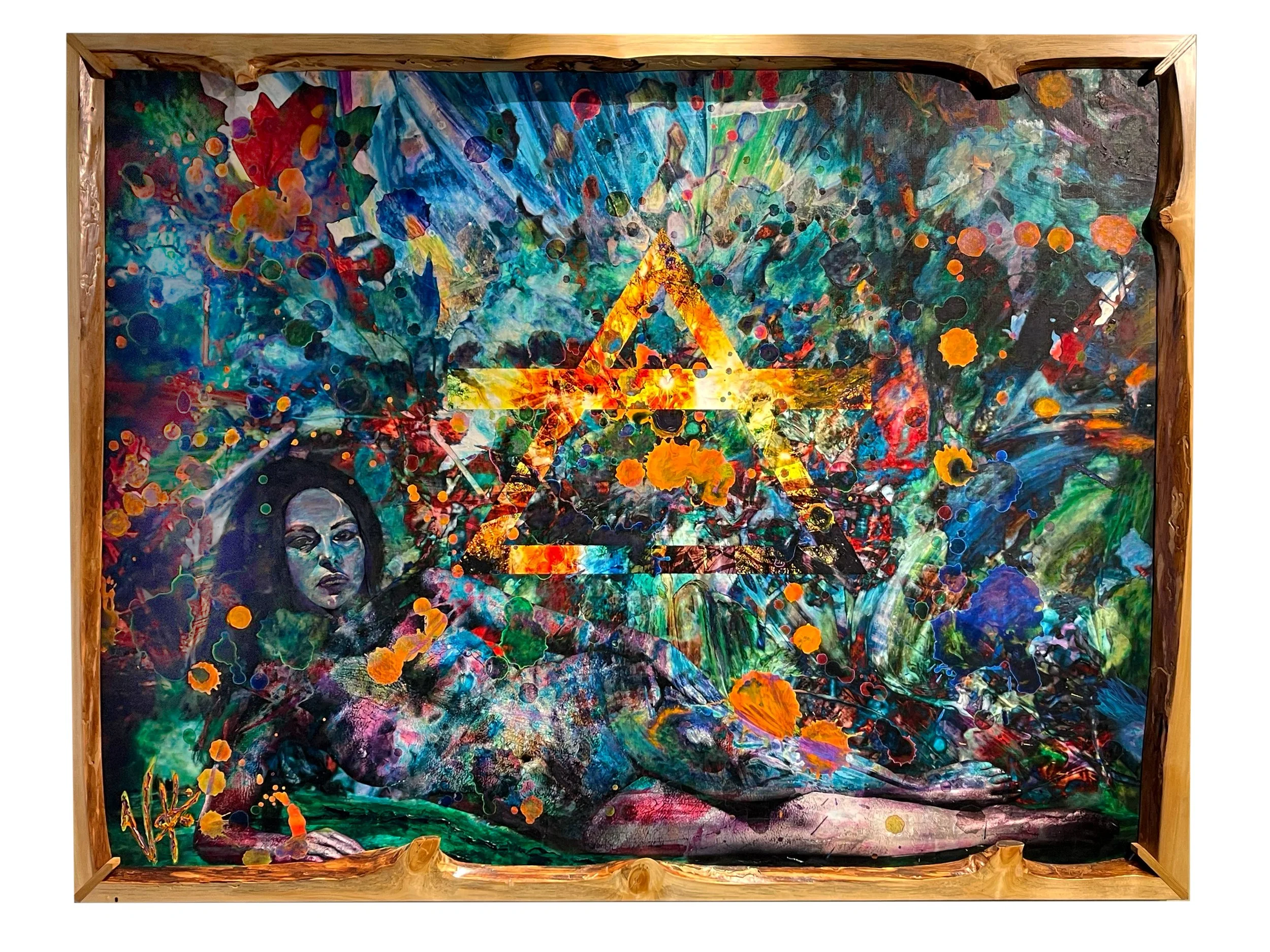 VESA’s abstract creations merge paint, photography, and digital collaging into layered visual experiences that bridge the tangible and the virtual. Each work begins with the physical textures of paint and photography, then evolves through intricate digital composition into unique pieces that carry both depth and narrative.