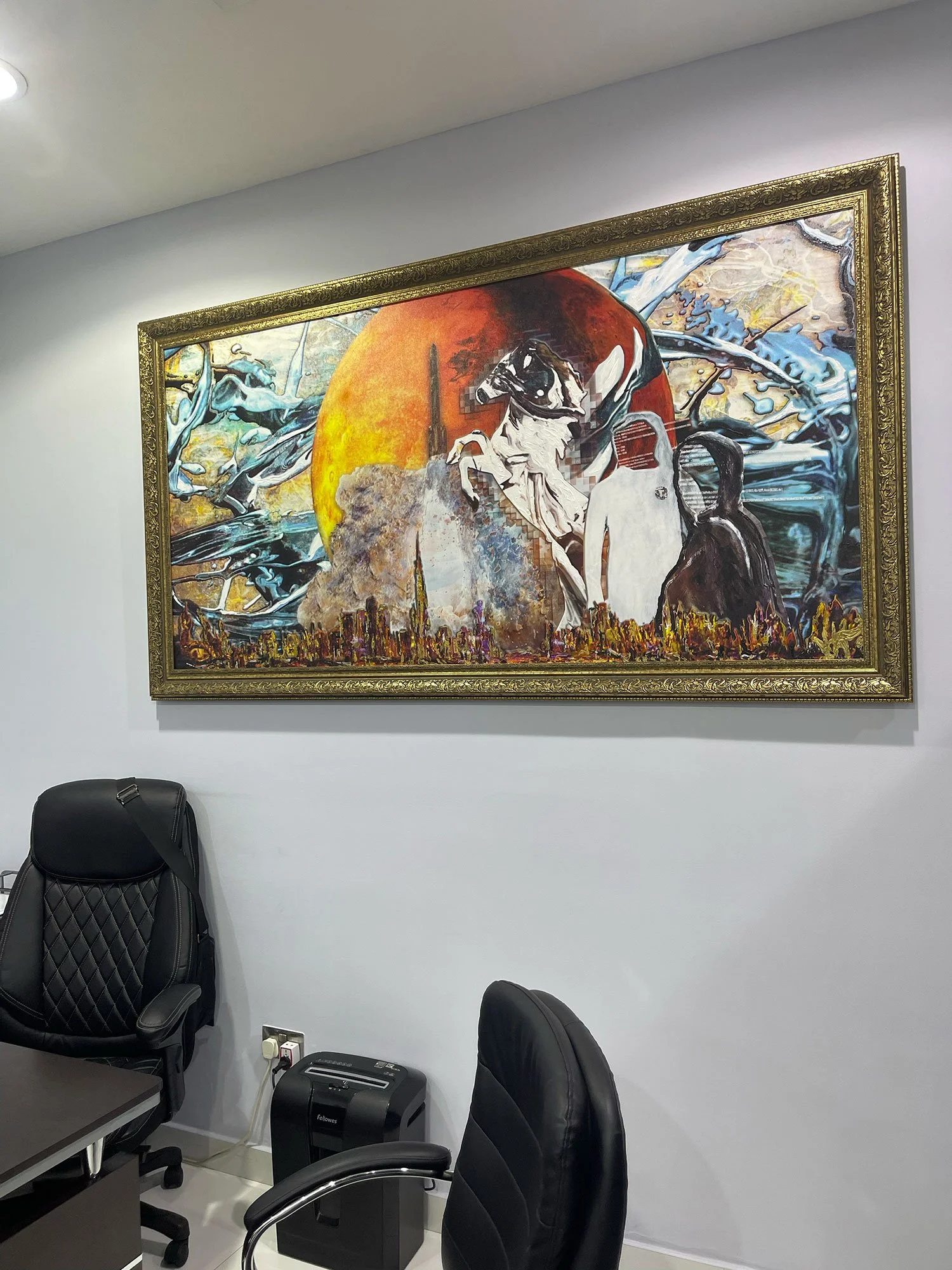 VESA creates symbolic works combining painting, photography, digital composition, and animation. Each piece exists across multiple dimensions — on a wall, on a screen, in augmented reality.